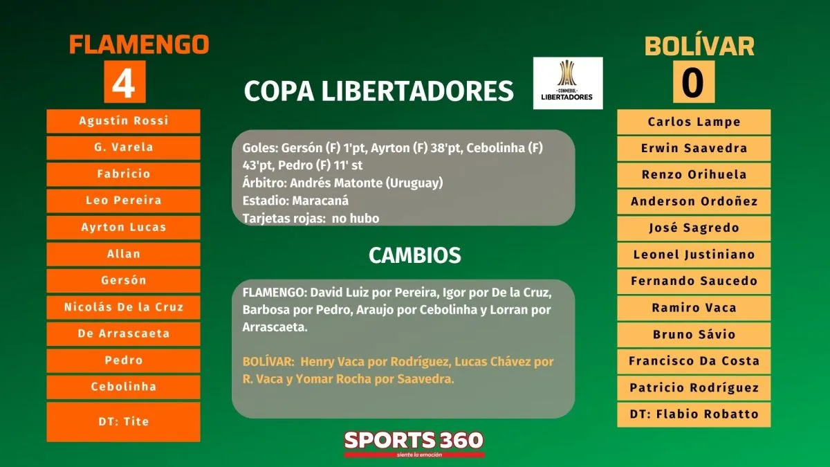 La derrota de Bolívar estaba en los planes, pero no perder por goleada. Pese al contraste, los celestes siguen como líderes del torneo e intentarán sellar el pase a octavos en casa frente al Palestino. Queda una gran incógnita de cómo resolverá Robatto el juego de su equipo si continúa en la Copa, en octavos los rivales serán igual o más exigentes que el Flamengo.