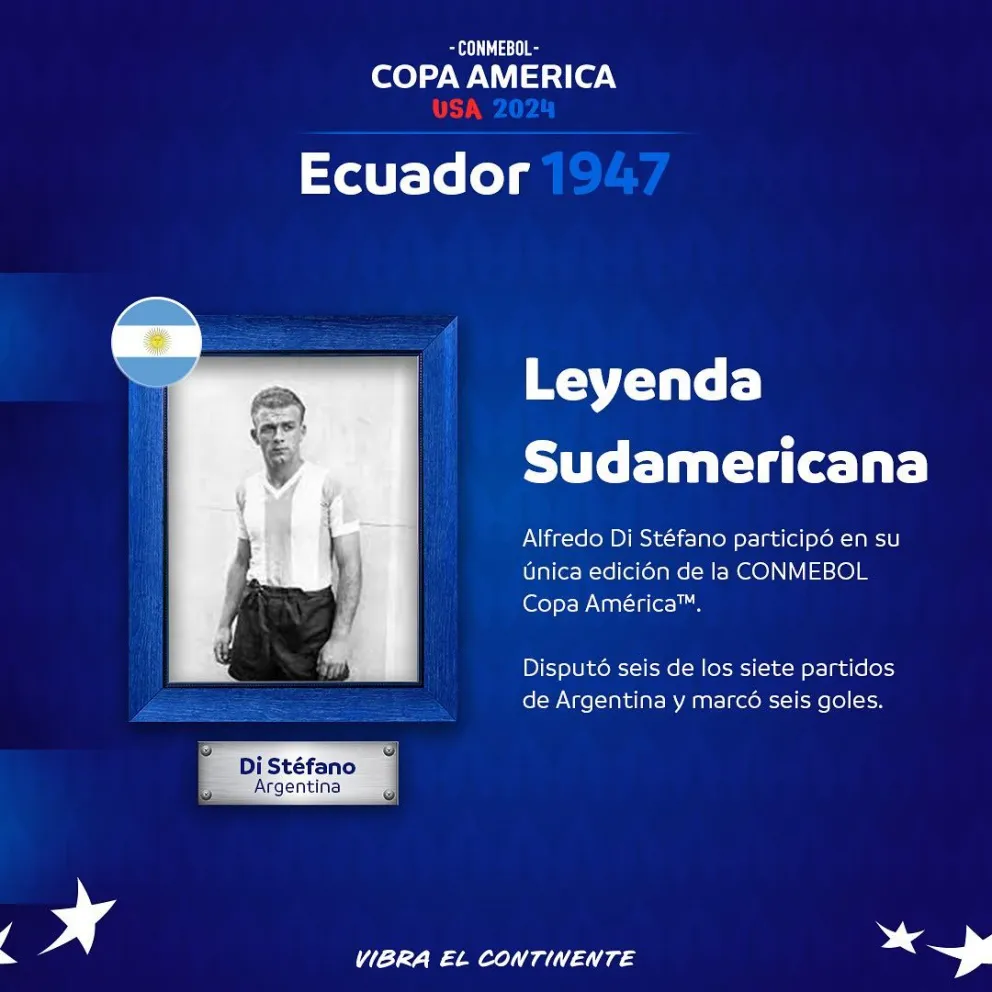Pero en aquel certamen, Di Stéfano no fue el único estandarte de la pelota en Argentina. De la mano del entrenador Guillermo Stábile, probablemente el más glorioso de la historia de la Selección argentina en la Copa América, la Albiceleste consiguió una hazaña que no volvió a repetirse: en Ecuador, consiguió el tricampeonato luego de ganar los títulos en 1945 (en Chile) y 1946 (en Argentina).