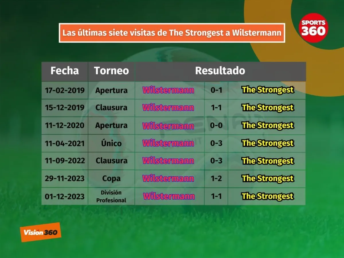 The Strongest no pierde desde hace más de cinco años con Wilstermann en el estadio Félix Capriles de Cochabamba, donde el domingo, desde las 19.30, volverán a verse las caras por la segunda fecha del torneo Clausura de la División Profesional.
