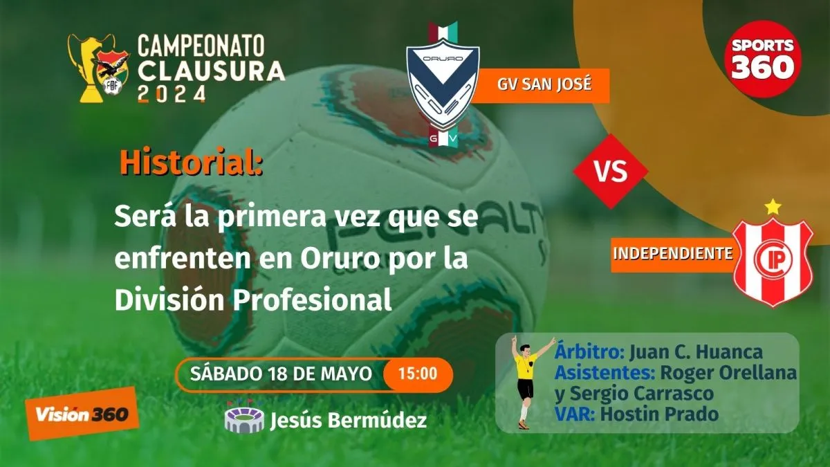 GV San José recibirá a Independiente de Sucre este sábado en el Jesús Bermúdez de Oruro con el objetivo de ganar en su primer partido de local, tras la derrota en el debut ante Real Tomayapo (2-0), en Tarija.