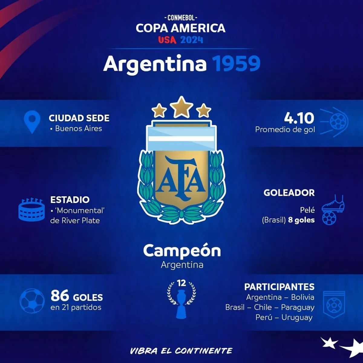 Argentina fue el país anfitrión de la Copa América por séptima vez en su historia, y con esta, la Albiceleste se coronó campeona en seis de esas siete ediciones disputadas en suelo argentino hasta ese momento.