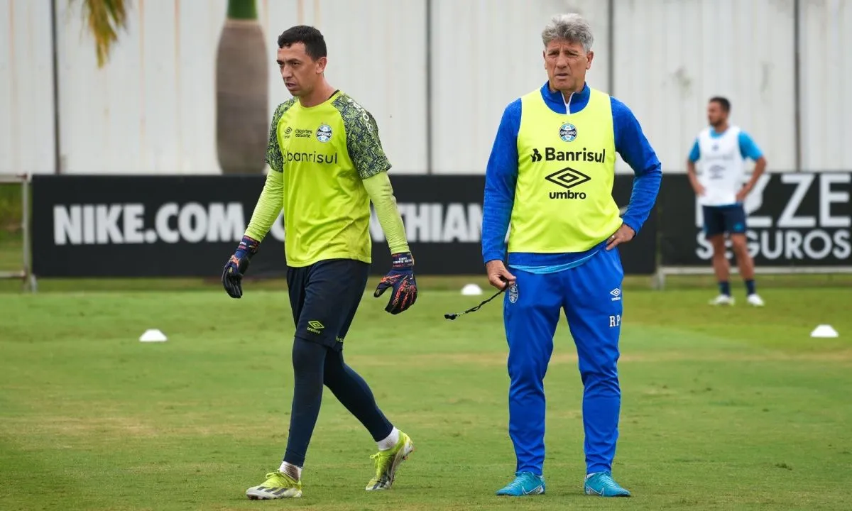 El entrenador Renato Gaucho (der.), junto al arquero argentino Agustín Marchesín. Foto: club Gremio