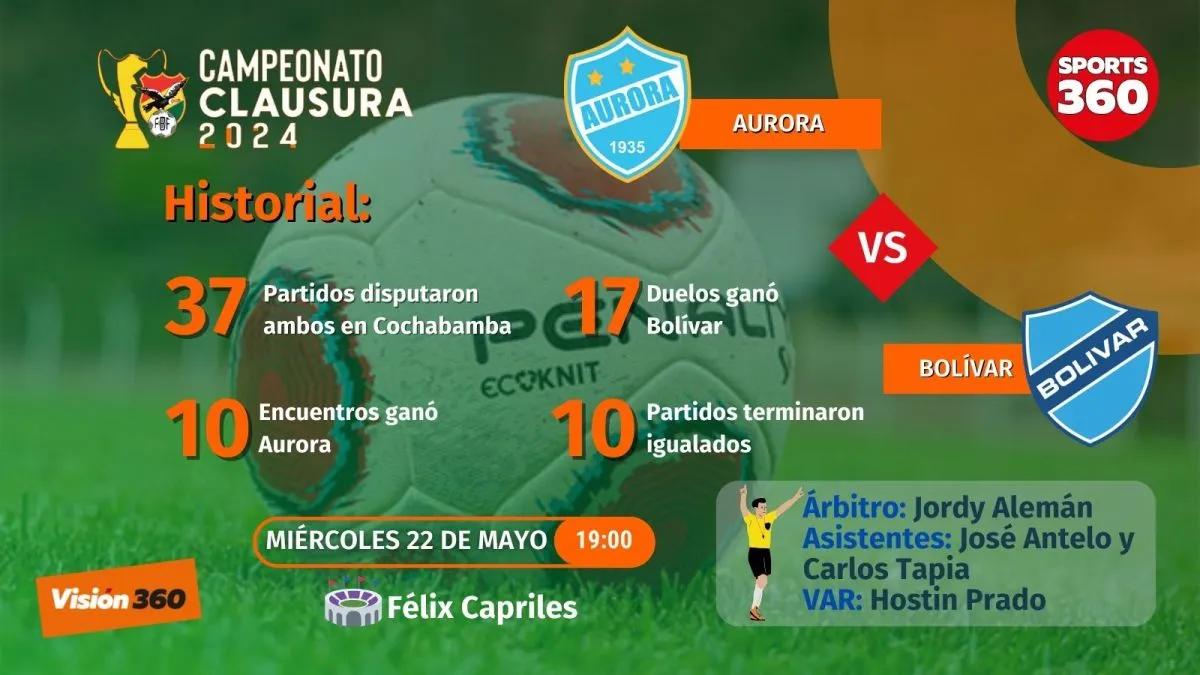Bolívar y Aurora protagonizarán este miércoles (19.00) en el estadio Félix Capriles de Cochabamba uno de los partidos más tractivos de la tercera jornada del torneo Clausura, pues el ganador se ubicará en la cima de la tabla de posiciones.
