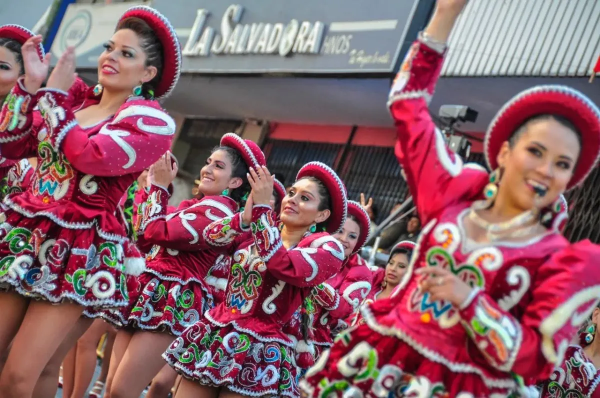 Un grupo de bailarinas de caporal, en una versión pasada de la fiesta del Gran Poder. Foto: AMUN