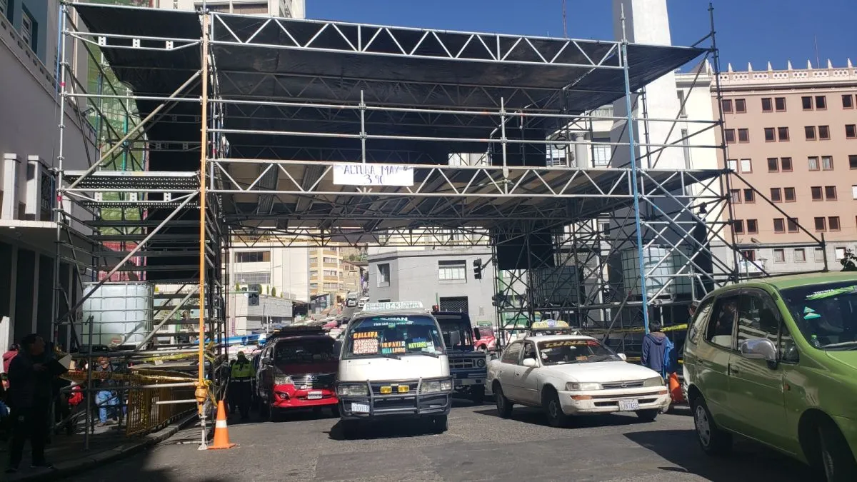 La estructura levantada en la avenida Camacho de La Paz. Fotos: Carlos Quisbert / Visión 360