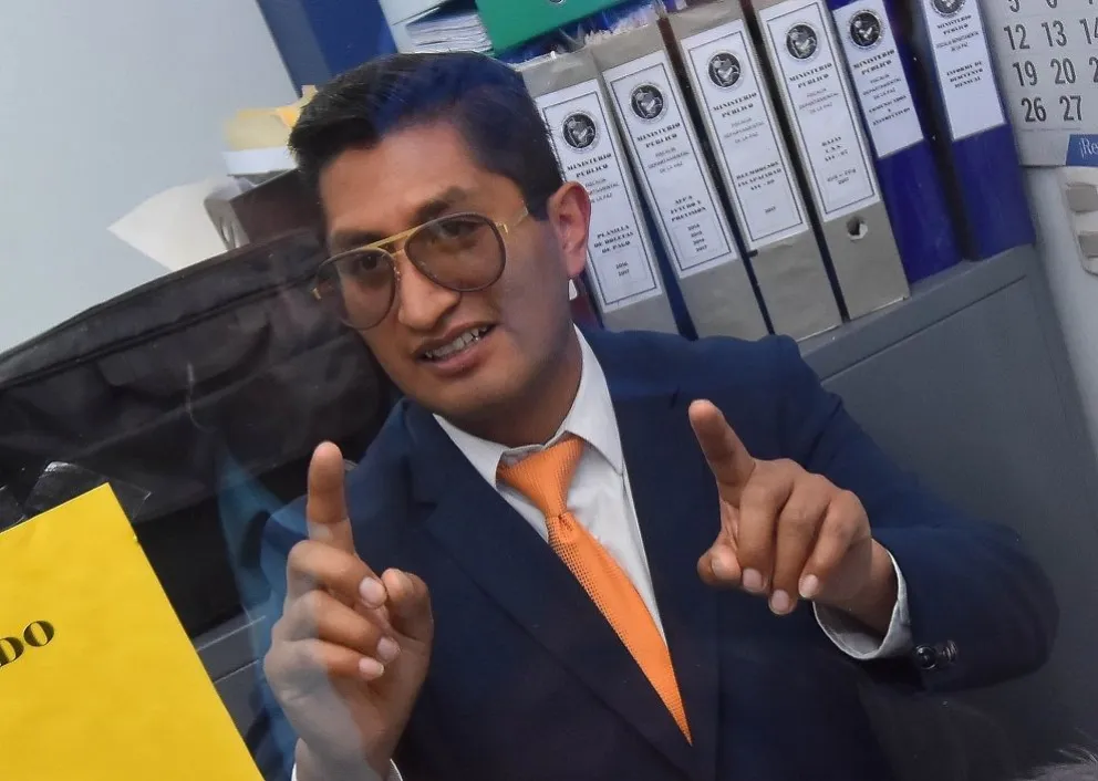 El exfiscal Edwin Blanco, luego de ser destituido y enviado a atender a litigantes en ventanillas. Foto: Página Siete