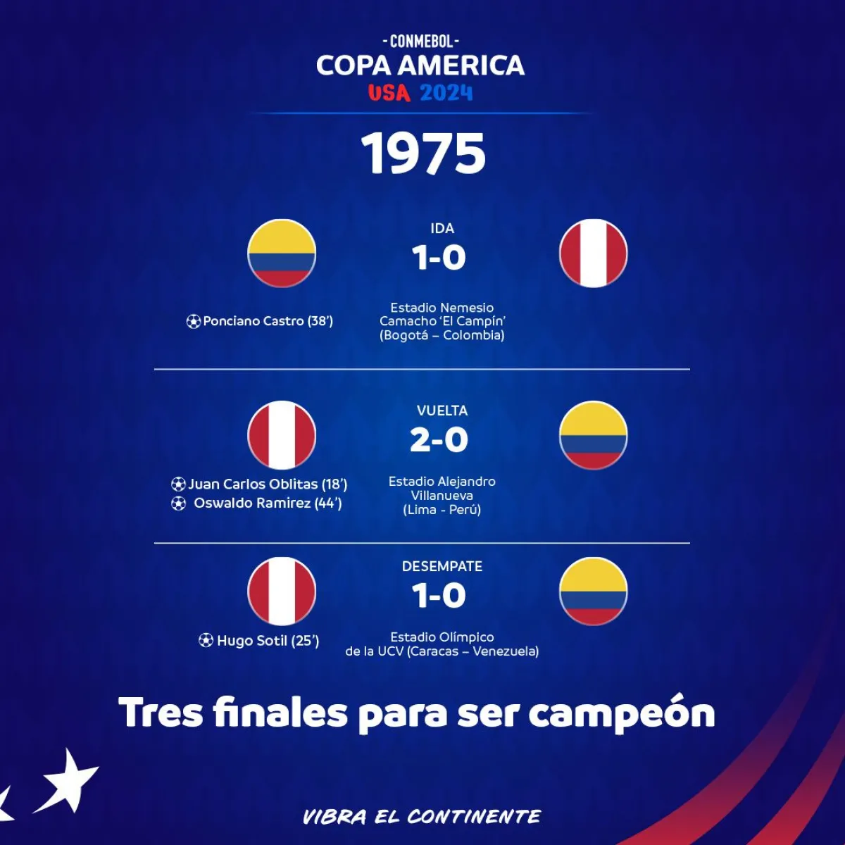 La final es otra historia, la cual tuvo un desenlace favorable para Perú el 28 de octubre, cuando en el Estadio Olímpico de Venezuela, Hugo Sotil le dio su segundo y hasta ahora último título de la Copa América al equipo incaico.