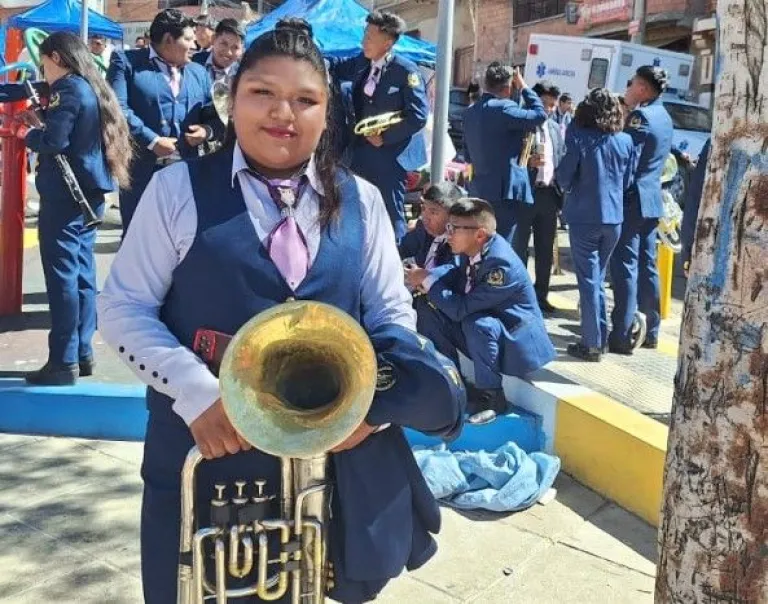Joselyn Alvarado Condori, de la Banda Armonía de Oruro.