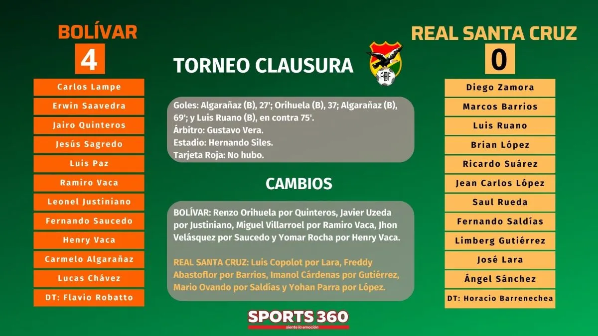 Sin mayores inconvenientes Bolívar goleó y hundió más a Real Santa Cruz (4-0) para volver a la cima de la tabla de posiciones, este sábado en el estadio Hernando Siles por la cuarta jornada del torneo Clausura.