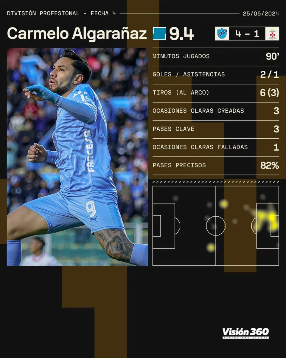 Los números de Algarañaz ante Real Santa Cruz. Crédito: Sofascore.