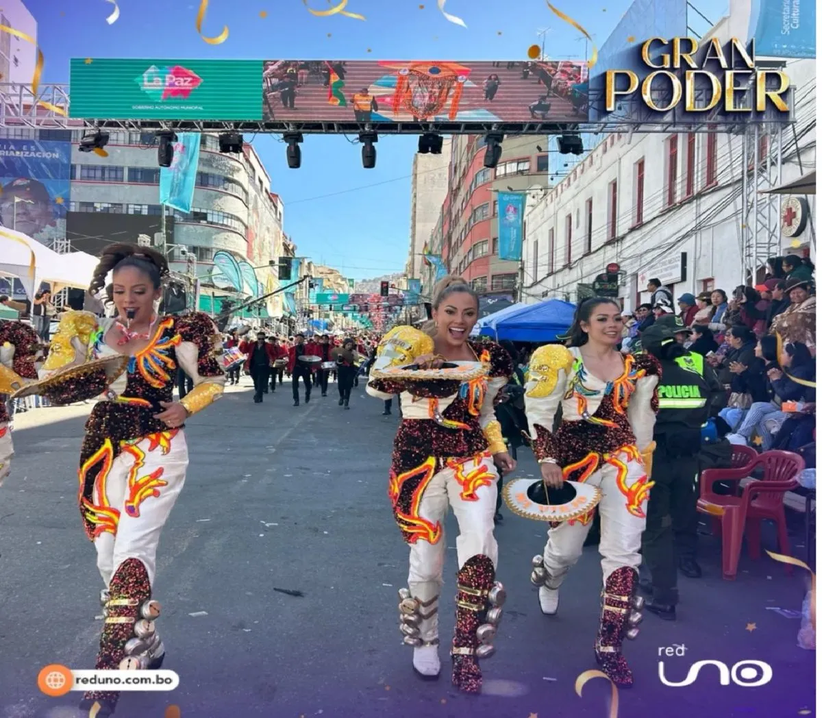 Los presentadores de la Red Uno, Claudia Torrez y Joseph Jaldin, también fueron reconocidos, cuando ingresaron a la entrada junto a los Caporales Centralistas, concretamente el bloque "Mi Viejo".