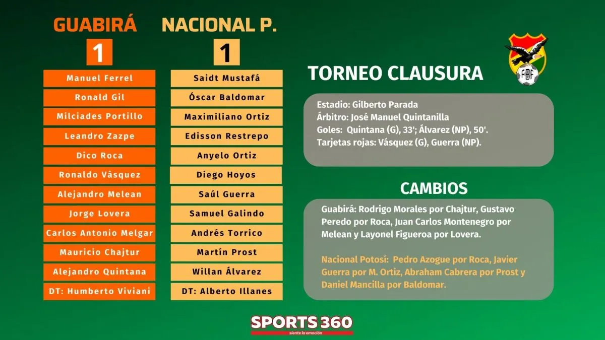 Guabirá sigue sin ganar en el torneo (dos empates y dos derrotas); mientras que Nacional sumó cuatro unidades, aunque quedó muy lejos de los punteros.