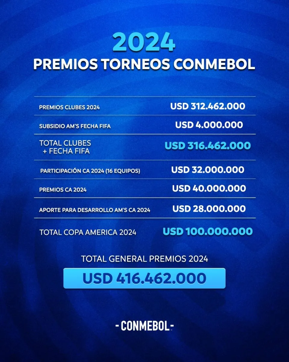 En total serán 100.000.000 de dólares los que se entregarán en el certamen, según publicó la Conmebol.