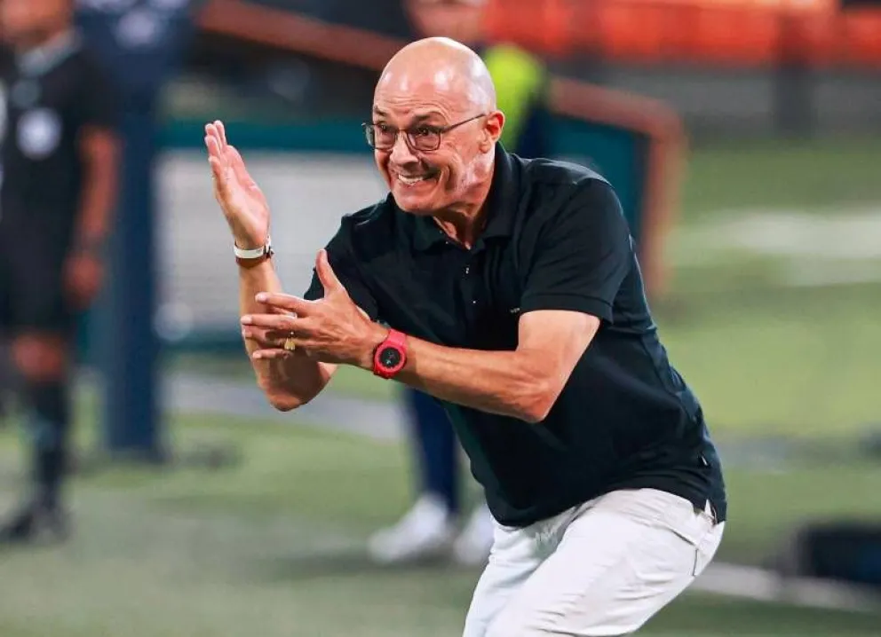 Alfredo Arias, DT del DIM, da indicaciones a sus dirigidos. Foto El Colombiano