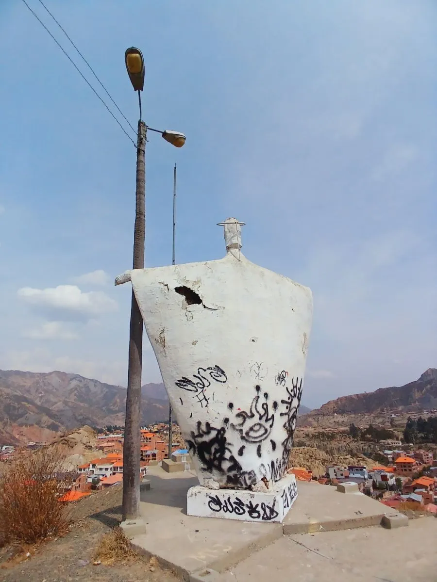 “Ingresa el agua dentro de la imagen y en un corto tiempo la humedad destrozará por completo la estructura. Lo peor son los vándalos, personas inescrupulosas que pintarrajearon gran parte de la imagen.  Por lo tanto, recomendamos al ejecutivo municipal intervenga y restaure este patrimonio histórico que se encuentra en el mirador de Mallasilla”, apuntó Escalier.