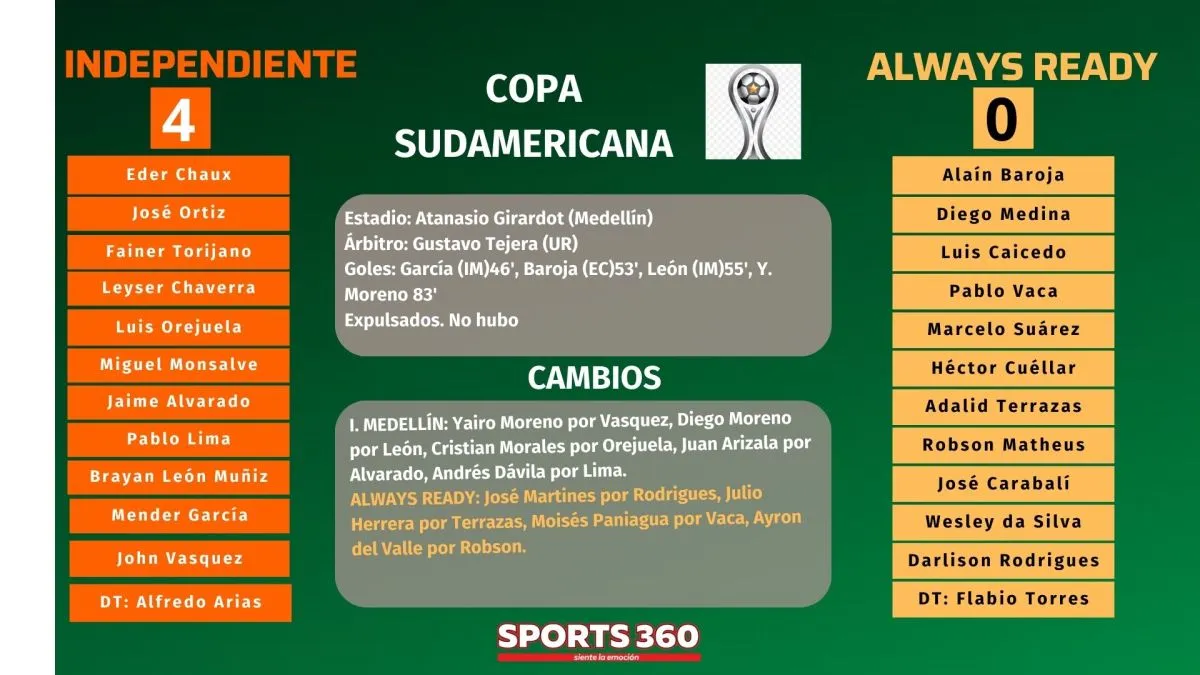 Always Ready sucumbió esta noche por goleada ante Independiente Medellín por 0-4 en el estadio Atanasio Girardot, con lo que se cerró la serie A de la Copa Sudamericana con los colombianos como primeros del grupo y los nacionales en segundo lugar.