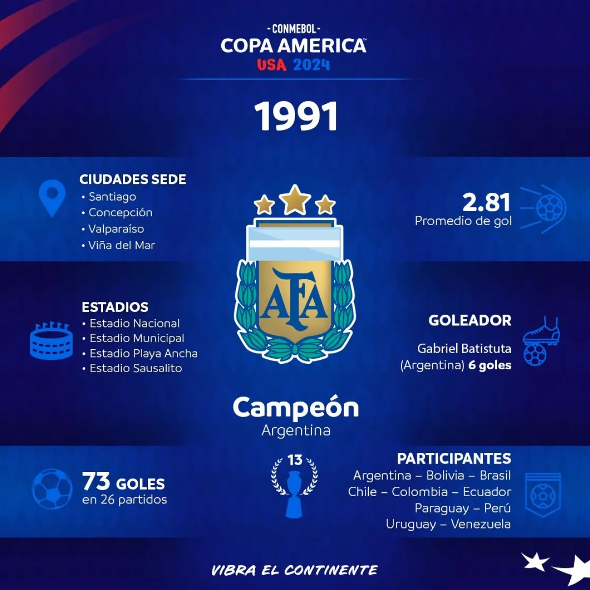 La Albiceleste conquistó su decimotercer título de la Copa América, igualando a Uruguay, que también se había llevado el trofeo trece veces hasta 1991.