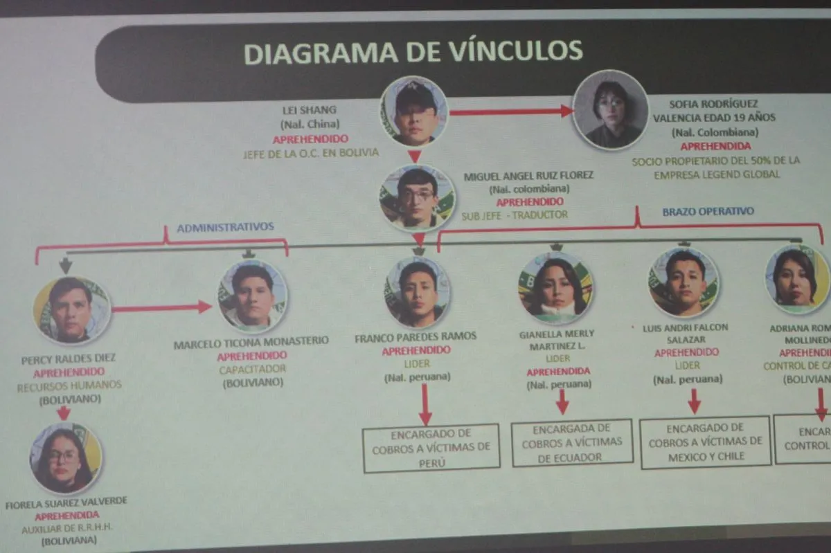 "Esta es una organización que trabaja en diferentes países: Perú, Chile, México, Ecuador y Bolivia. Estaban bien organizados y tenían encargados de ciertos niveles, pero todo bajo la dirección del ciudadano asiático y otras personas que hoy están aprehendidas", explicó Álvarez.
