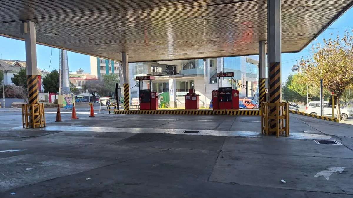 Al frente de la gasolinera Volcán, se encuentra una estación de servicio de YPFB donde se formó una fila más corta que se extendía hacía la Terminal de Buses, pero en el lugar solo se comercializa gasolina.