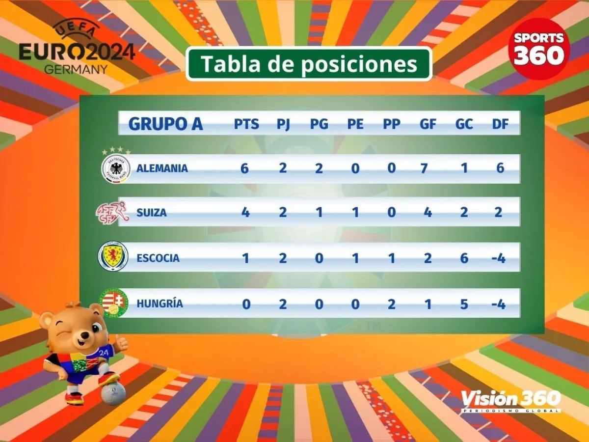 Sólo aparece un problema para Suiza, favorita para el pase. Aunque depende de sí misma y tiene todo muy cerca, se enfrenta en la última cita contra Alemania, temible, vencedora de sus dos primeros encuentros, dentro de la euforia por la que vuela en 'su' Eurocopa. Suma tres puntos más que Escocia, pero el conjunto británico, y su fatal diferencia de goles, se miden a Hungría.