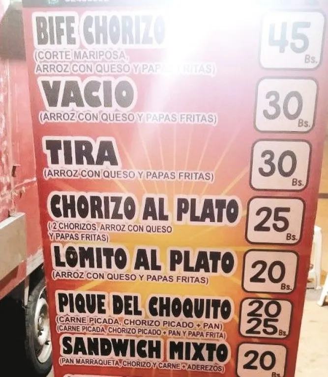 Pero para quienes buscan variedad están los carros y remolques de la zona de Ciudad Satélite, donde, por ejemplo, se encuentra el food truck “El parrillero del choquito”, que ofrece un menú variado como bife de chorizo, lomito al plato, tira, choripán, entre otros platos.