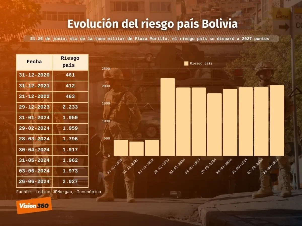 El riesgo país de Bolivia se disparó a 2.027 puntos el día de la toma militar de Plaza Murillo