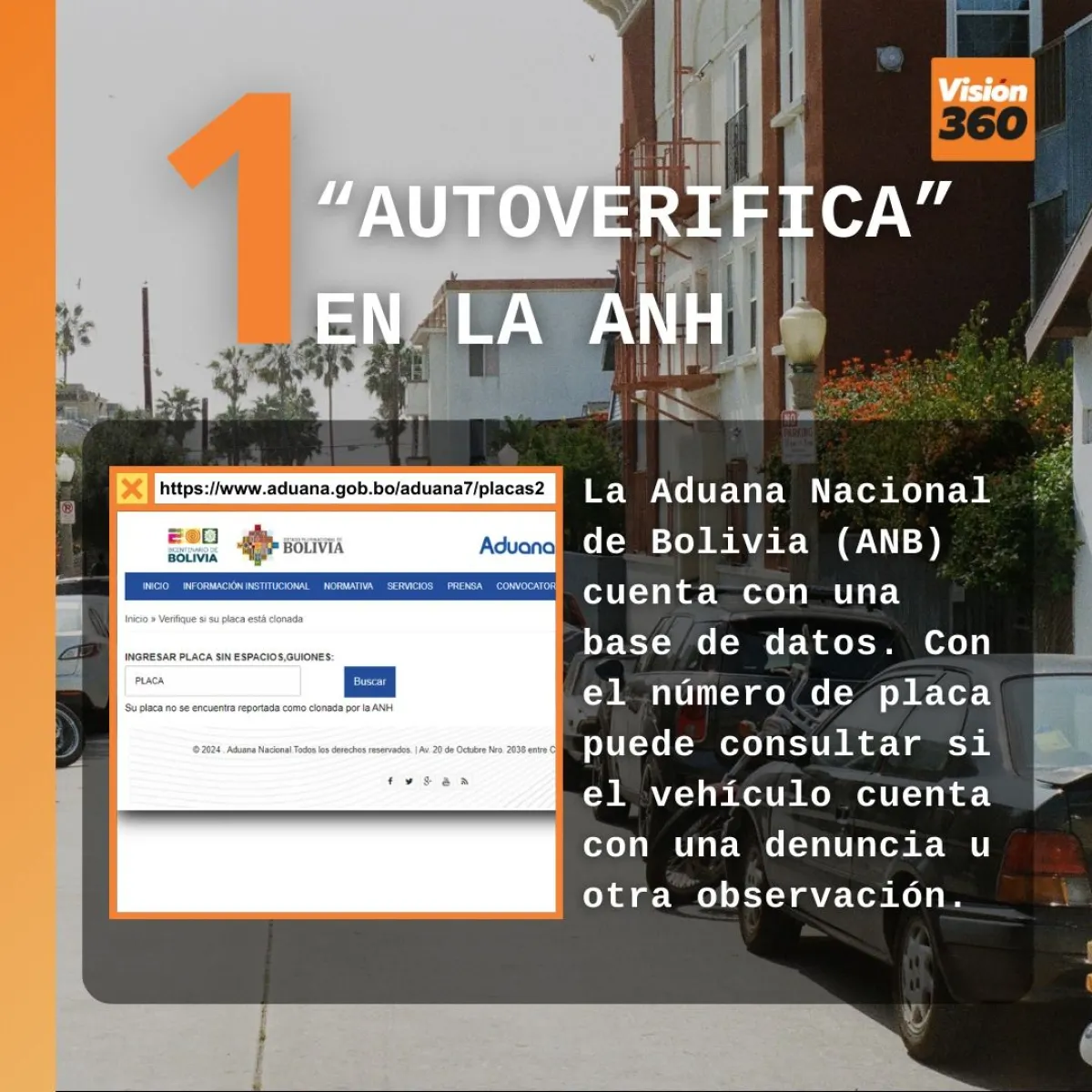 “Cuando identificamos un vehículo revisamos las cargas de combustible en el registro de la ANH. Cargas simultáneas en ciudades o departamentos distintos es un indicio de que la placa está clonada. También revisamos si el número de chasis está registrado en la ANB. Si no lo está es porque el vehículo entró de forma ilegal y no debería tener placa”, dijo el gerente regional de la Aduana Santa Cruz, José Luis Mollinedo.