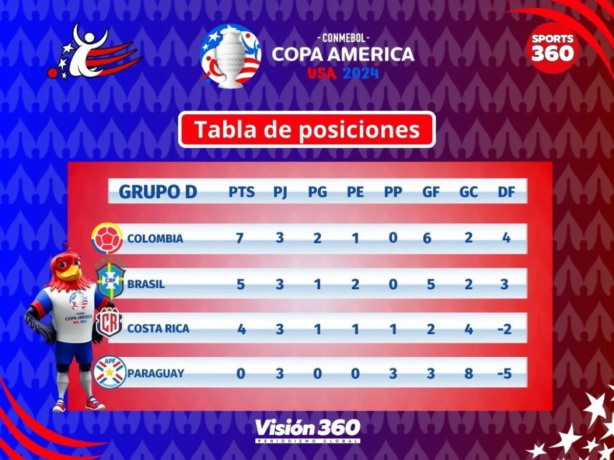 Los cafeteros se medirán en cuartos a Panamá, la gran sorpresa de esta Copa América de Estados Unidos, el próximo sábado, en Glendale (Arizona). Brasil volverá a Las Vegas para enfrentarse a Uruguay.