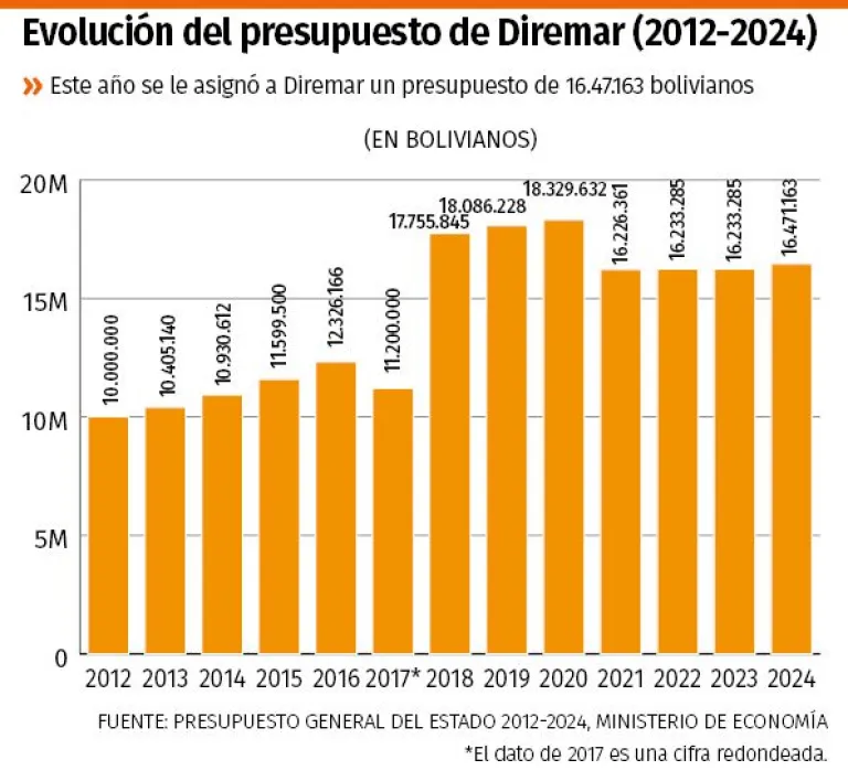 Otro año que Diremar mantiene su presupuesto de Bs 16 MM, sin juicios