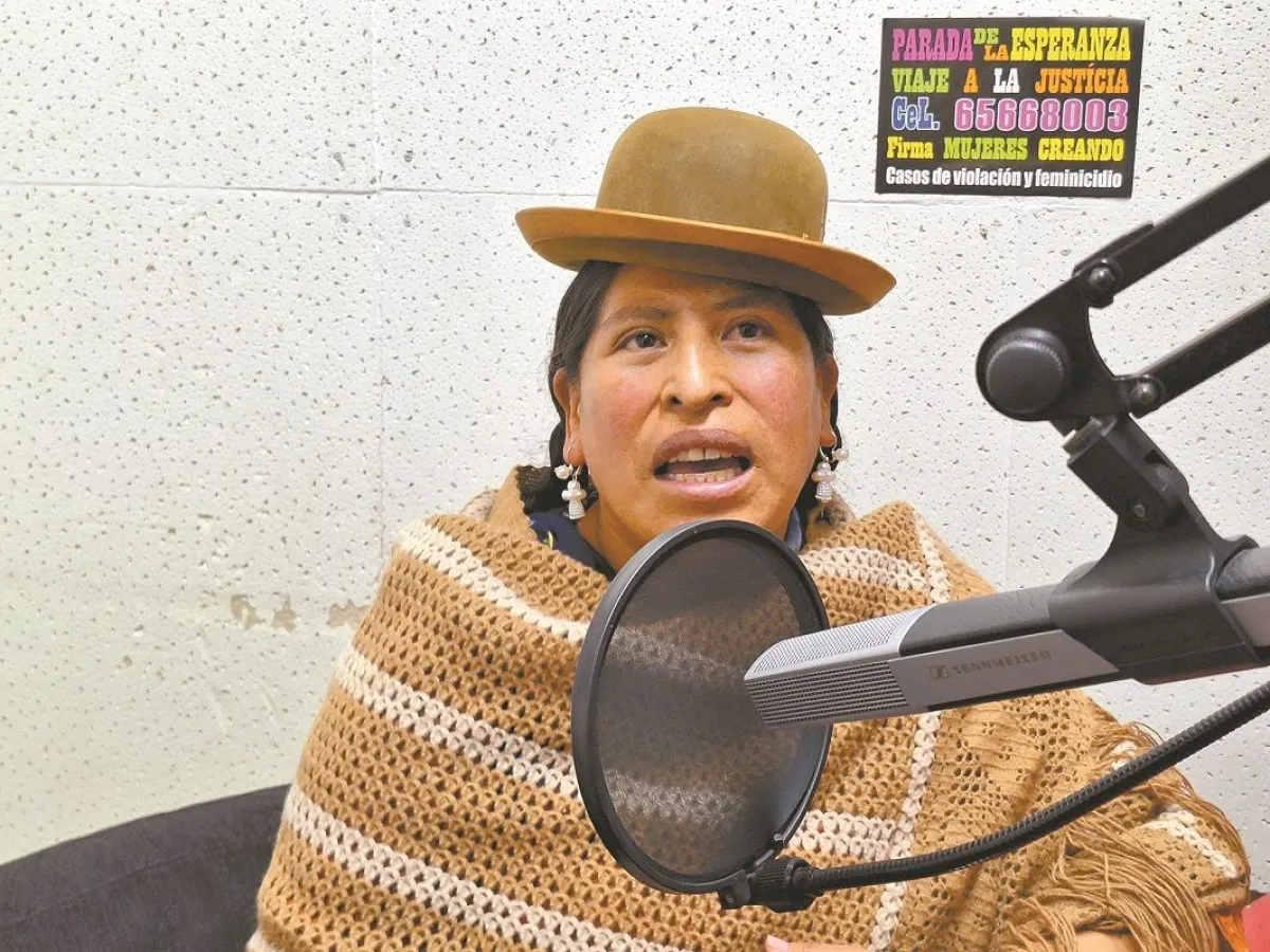 En la radio, Yola Mamani brinda ayuda a otras mujeres. Foto: Paulo Lizárraga