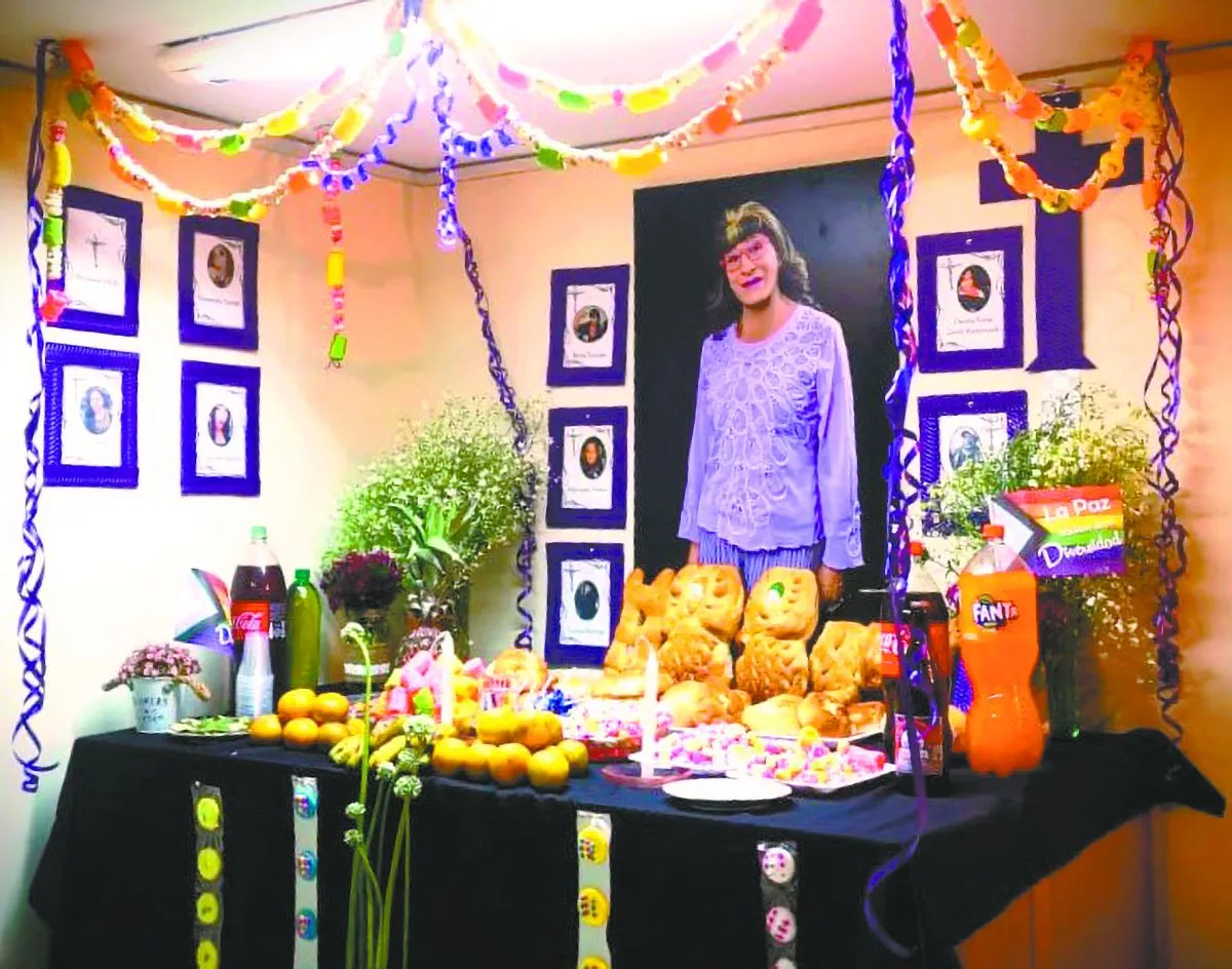 Una mesa de Todos Santos, armada en honor a activistas y a las víctimas de transfeminicidio.