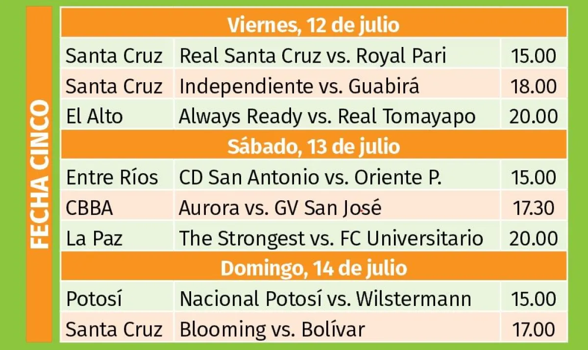 La Dirección de Competiciones aprobó las próximas nueve fechas, siete se jugarán en fin de semana y dos en mitad de semana. Después habrá una nueva pausa, pero será menor que la anterior, de 15 días, para que Bolivia afronte en septiembre la doble jornada de ese mes de las eliminatorias al Mundial 2026.