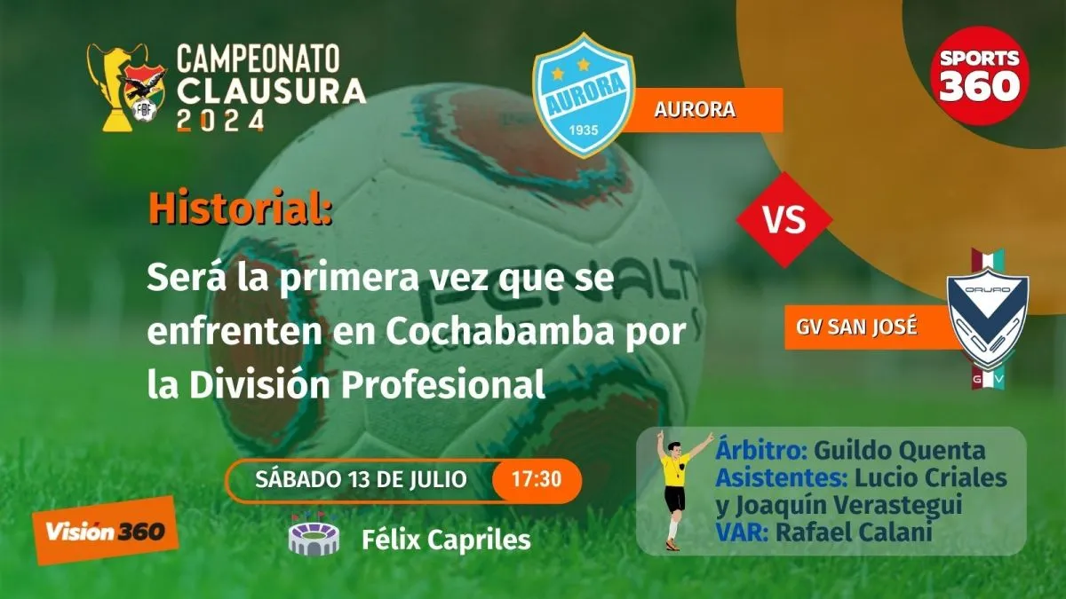 Desde las 17.30 en el Félix Capriles, también en Cochabamba, Aurora saldrá a defender su invicto ante GV San José