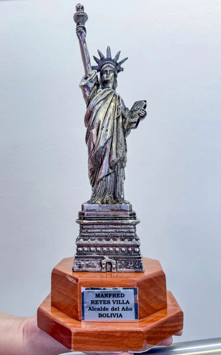 El alcalde de Cochabamba, Manfred Reyes Villa, recibió este sábado un reconocimiento como “el mejor alcalde latinoamericano del año” en la vigésima segunda cumbre latinoamericana por la democracia y desarrollo y comunicación política celebrada en Nueva York.