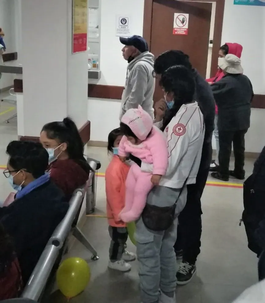Pese a las bajas temperaturas que se presentan en Villa Fátima, por su cercanía a la cumbre, desde muy tempranas horas, decenas de mamás se dieron cita en el Hospital Municipal La Merced. Este es uno de los que más pacientes recibió. Familias enteras y con varios niños abarrotaron los pasillos.