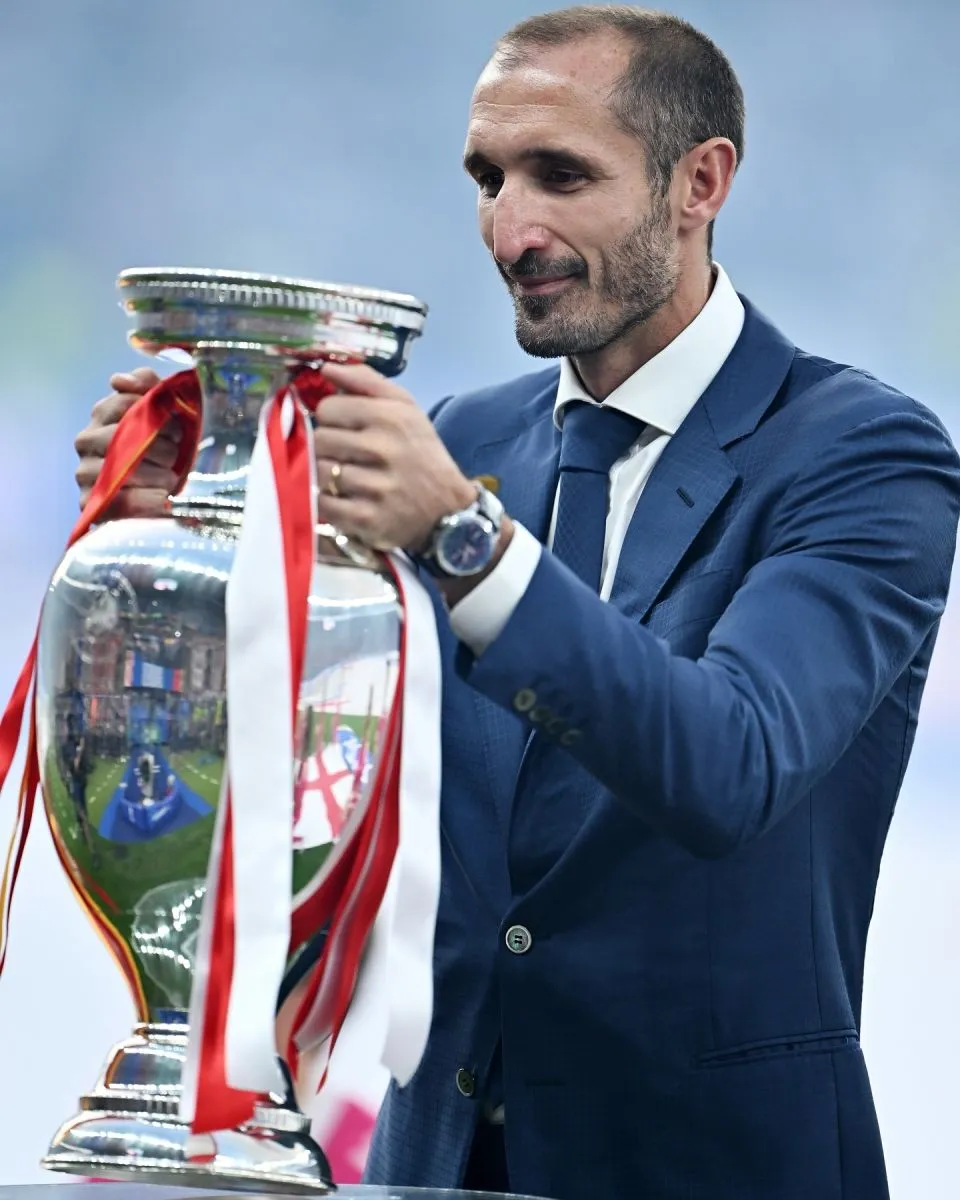 Giorgio Chiellini deja el gtrofeo de campeón de la Eurocopa. Foto UEFA