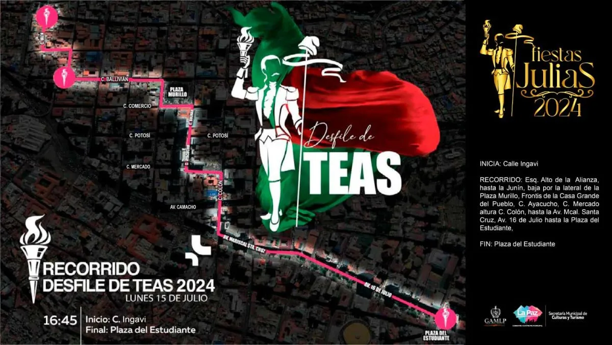Todo está listo para celebrar los 215 años del grito libertario del 16 de julio de 1809. El tradicional Desfile de Teas comenzará a las 18:00, mientras que la verbena paceña comenzará a las 13:00 para que los públicos de todas las edades puedan asistir.