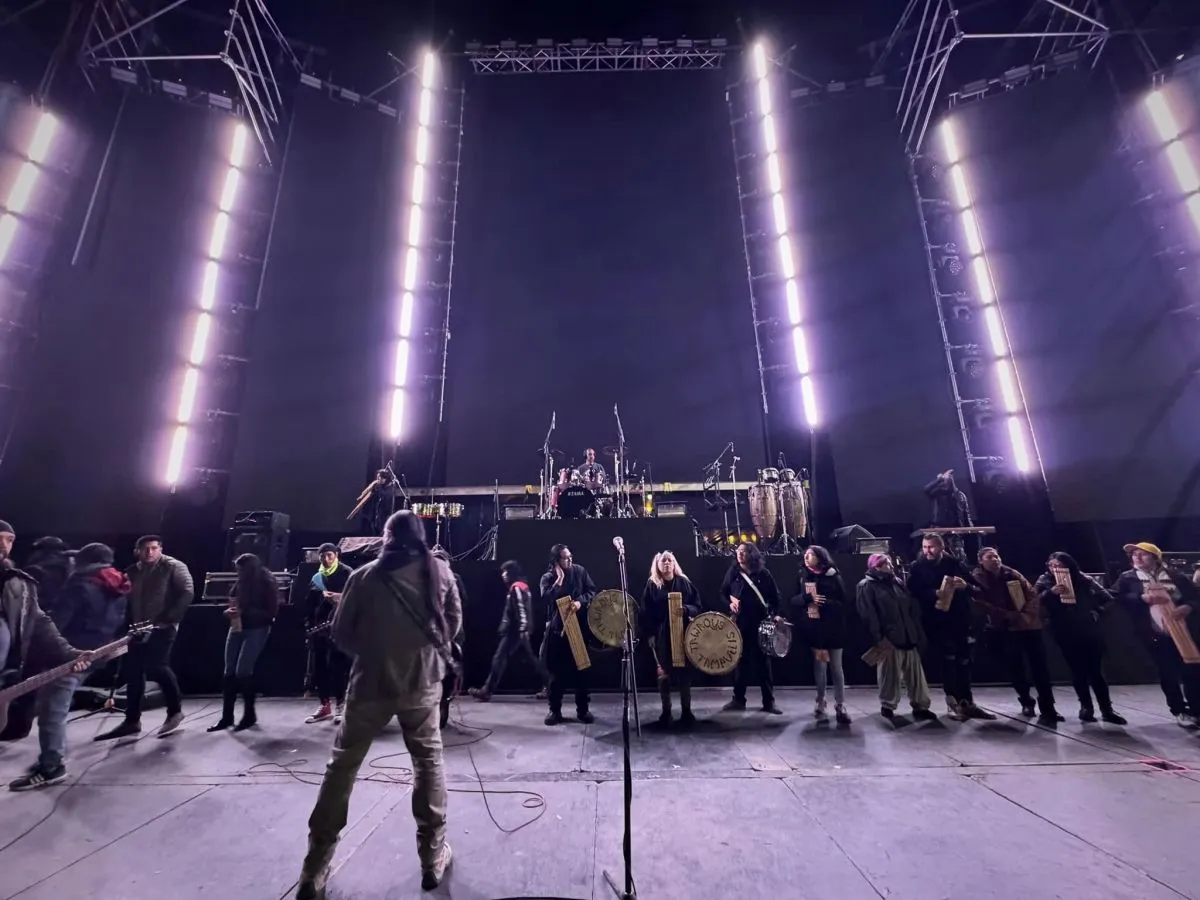 Prueba de sonido del grupo Alcohólika y un conjunto de sikuris en el escenario para la verbena. Foto: La Paz Culturas