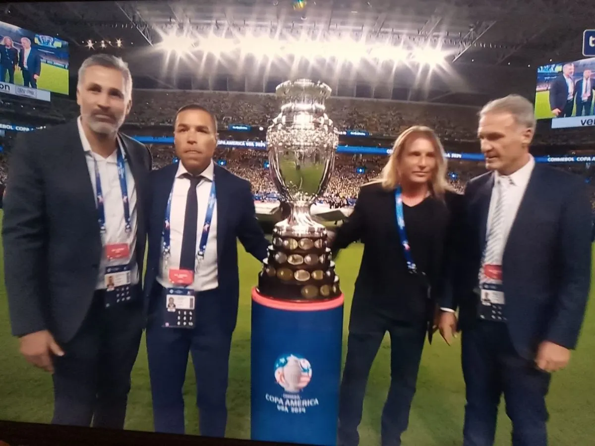 Yepez, Córdoba, Caniggia y Ruggeri junto a la Copa América. (Captura de pantalla)