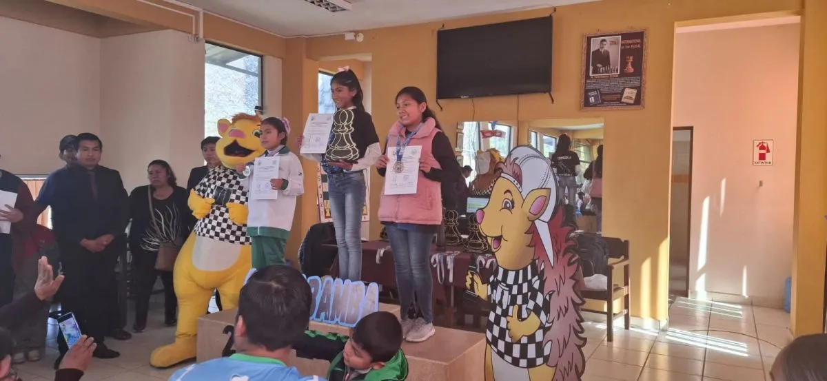 La premiación de un podio femenino. Foto: Federación Boliviana de Ajedrez.