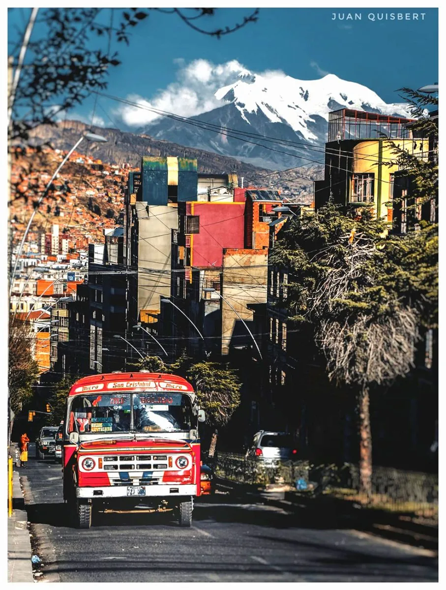 Una vista del Illimani y de una de las calles de la ciudad de La Paz. Foto: Juan Quisbert