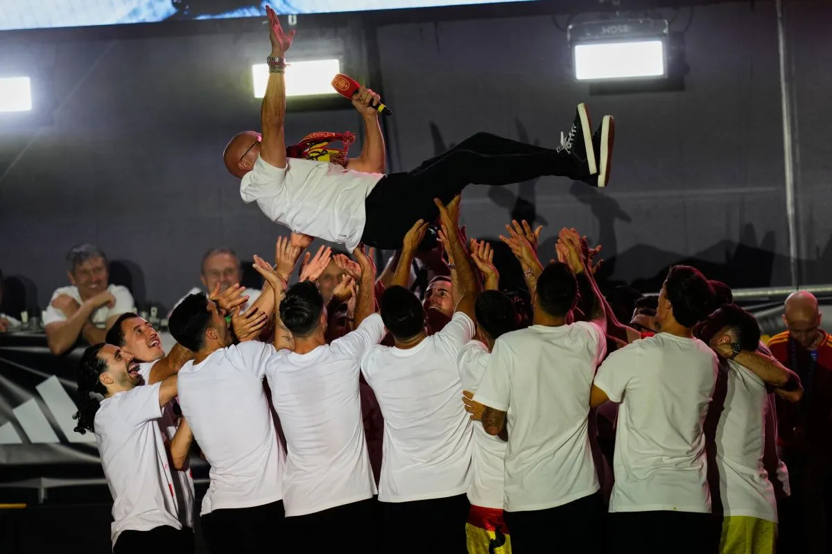 Los campeones de la Eurocopa 2024 bailan en el festejo con los aficionados en Madrid. Foto: selección española.