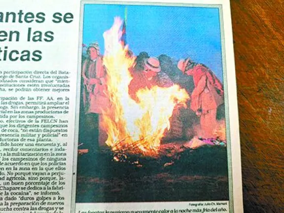 Nota de Presencia de 1991 sobre el control de la Alcaldía paceña a las fogatas.