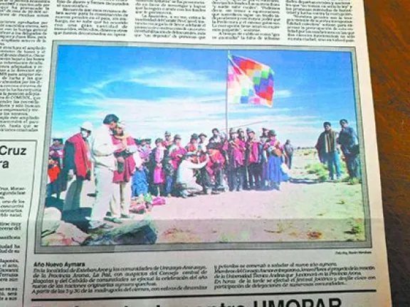 Fotonota de Presencia que en 1991 registró la celebración del Año Nuevo Aymara, que le quitó espacio a la de San Juan. Foto: Presencia / Biblioteca Municipal