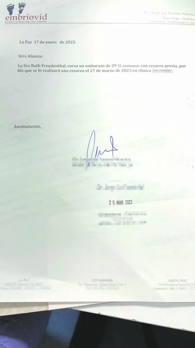 Ruth era atendida por el ginecólogo Jorge L.F.M., quien es  director de la clínica que se ubica en la calle 25 de Los Pinos, en la zona Sur de La Paz, según datos del informe de auditoría médica externa que realizó el Servicio Departamental de Salud (Sedes) de La Paz.