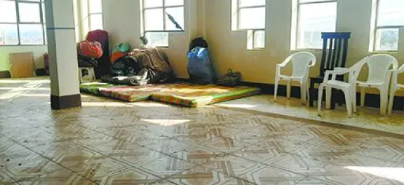 Colchones para los afectados en la sede social de la urbanización. FOTO: Jorge Soruco / Visión 360