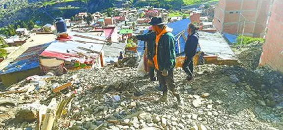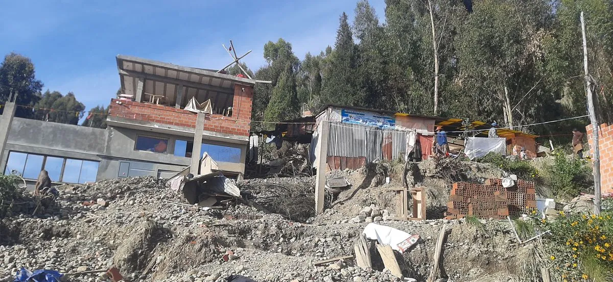 “Es culpa de El Alto. Ellos botan sus aguas a los cerros y bien débiles los dejan”, reclamó doña Florencia (seudónimo), una de las propietarias afectadas por la riada de lodo y que recibió la ayuda del estudiante de Enfermería.