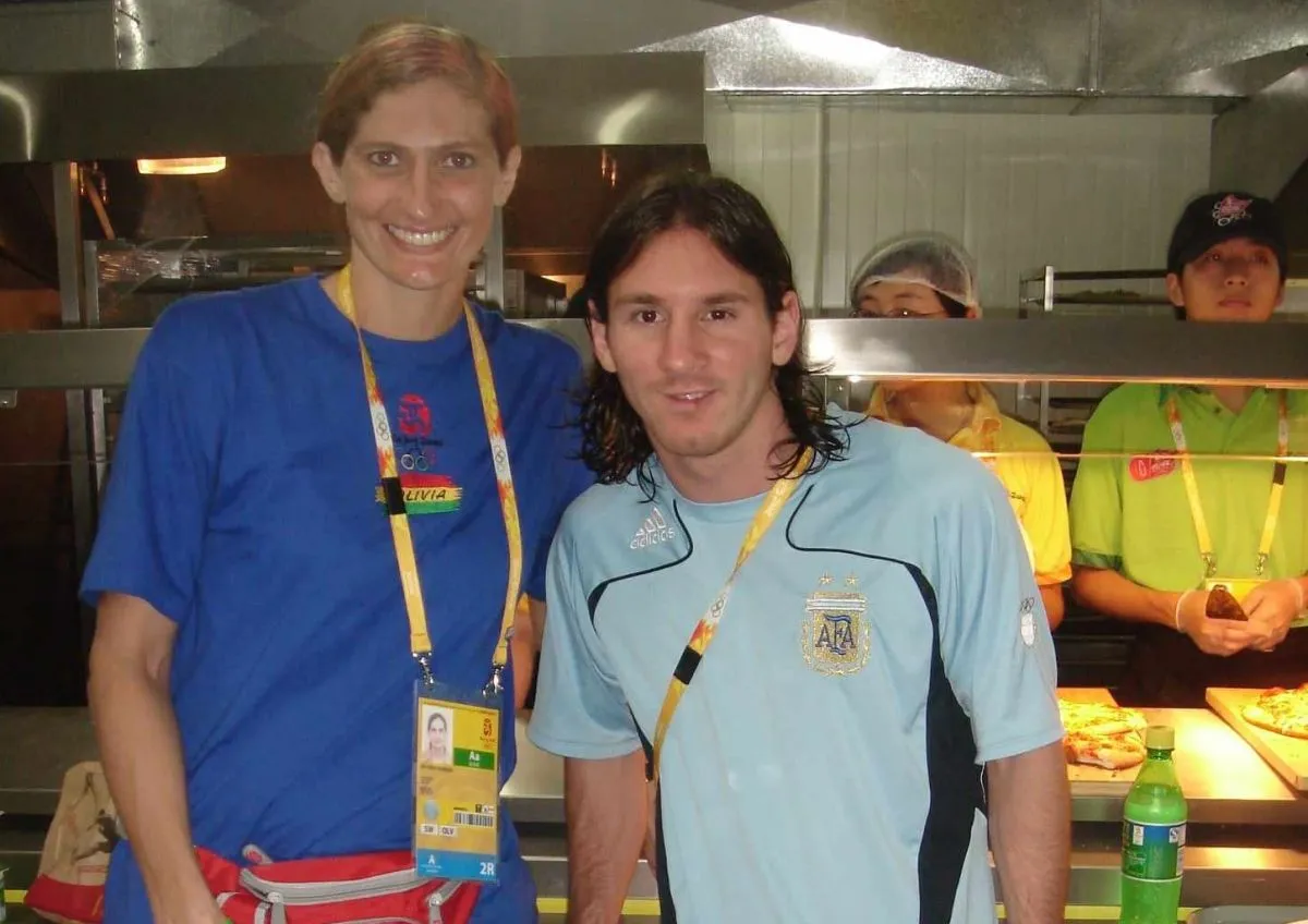 La nadadora boliviana con un joven Lionel Messi en los Juegos de Pekín 2008. Foto: Katerine Moreno.