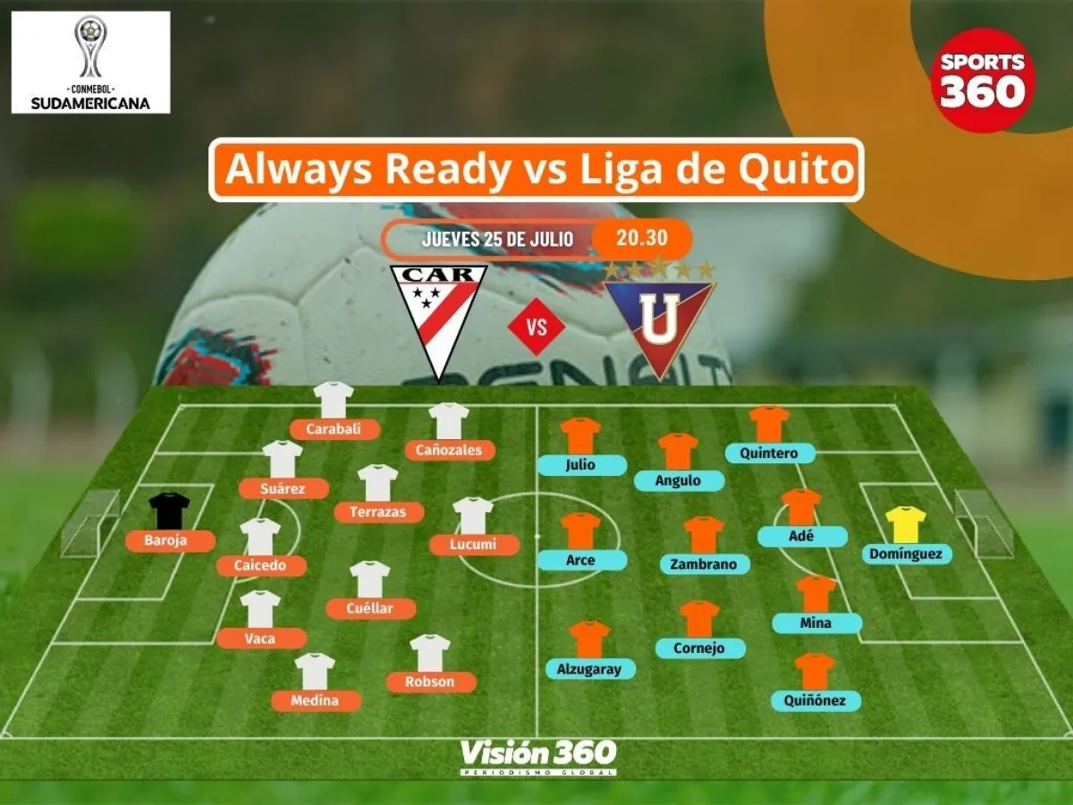 Always Ready buscará esta noche la contundencia y la fuerza ofensiva para remontar el resultado del partido de ida ante Liga de Quito (0-3) para superar el play off y avanzar a octavos de la Copa Sudamericana , en el cotejo revancha a jugarse en el estadio Municipal de Villa Ingenio a partir de las 20.30.