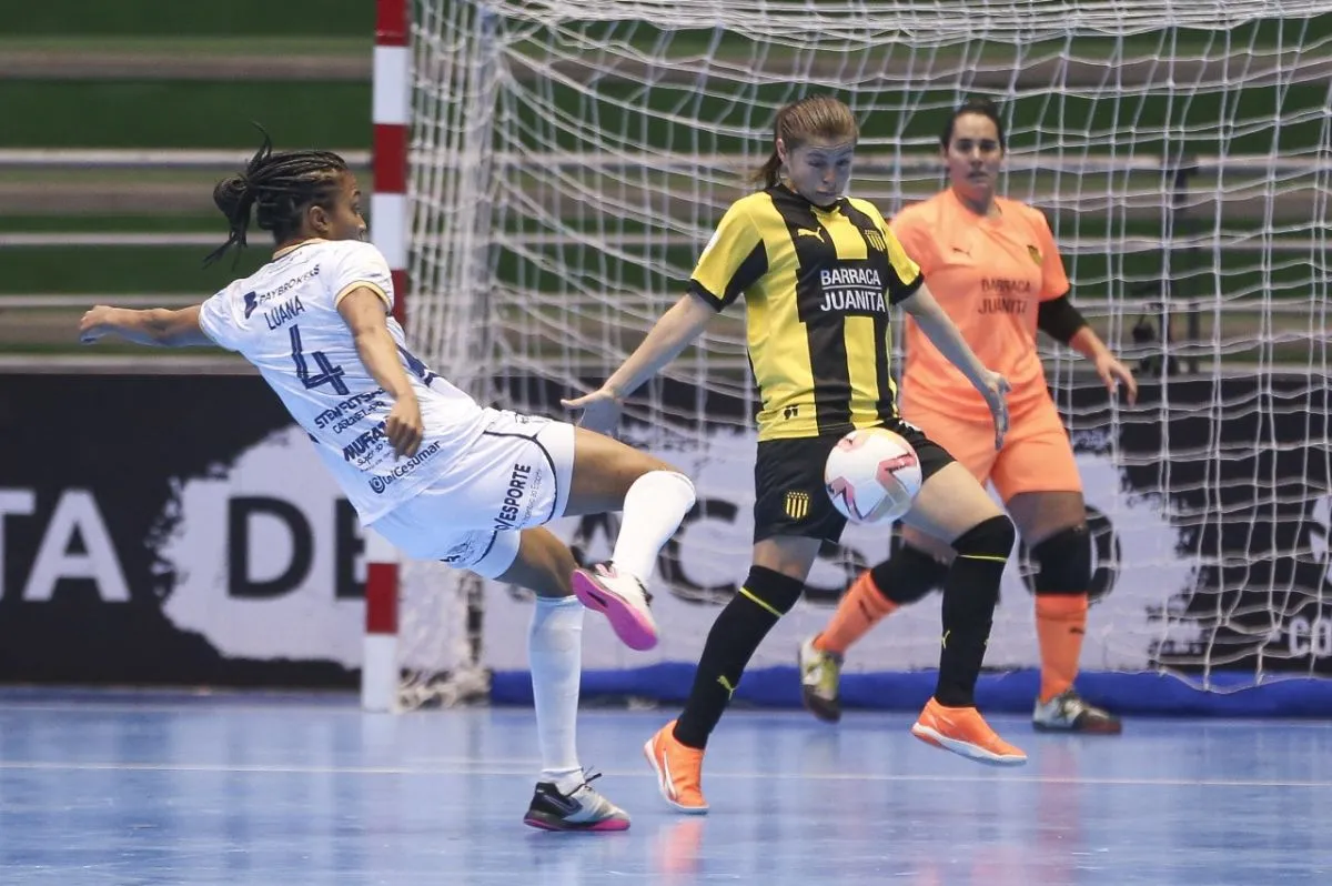 Incidencia del partido entre Stein Cascavel (de blanco) y Peñaro. Foto: Conmebol.